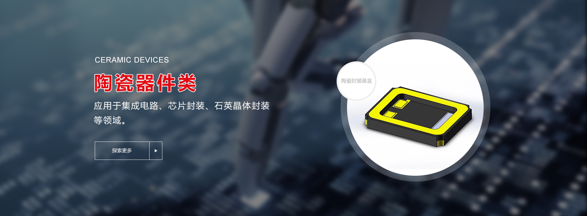陶瓷封裝基盒等芯片制造陶瓷產品; 應用于集成電路、芯片封裝、石英晶體封裝等領域。