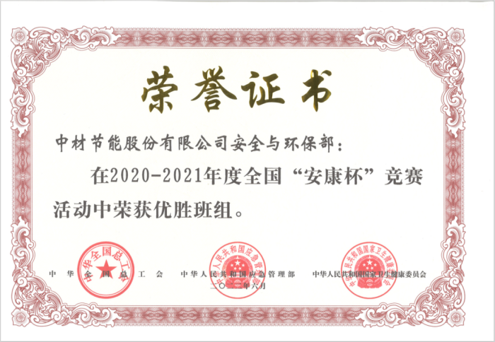 中材節(jié)能安全環(huán)保部獲2020-2021年度全國(guó)“安康杯”競(jìng)賽優(yōu)勝班組榮譽(yù)稱號(hào)